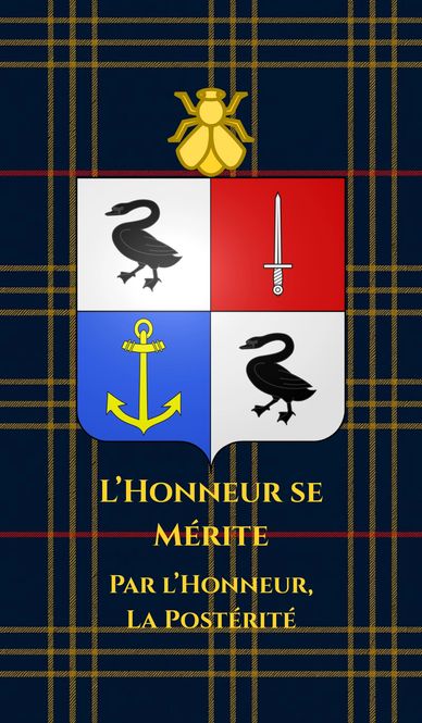 The Arms of the Noble Baronial House of Hamelin stand at the apex of heraldic authority and precedence. The Baronial Standard represents the authority of the Baron in office and takes precedence over all other banners and flags. The House Flag represents the institution of the House in the absence of the Baron. The Court Banner is used for indoor, courtly, and representational settings and is subordinate to the Baronial Standard. The Personal Standard represents the person of the Baron and is displayed only in contexts relating specifically to him, and to represent the Baron in transit. The Naval Ensign is used according to their designated purposes. Tartans, the Baronial Seal, and the Cypher serve symbolic, identificatory, and authenticating functions in accordance with established custom and restraint.